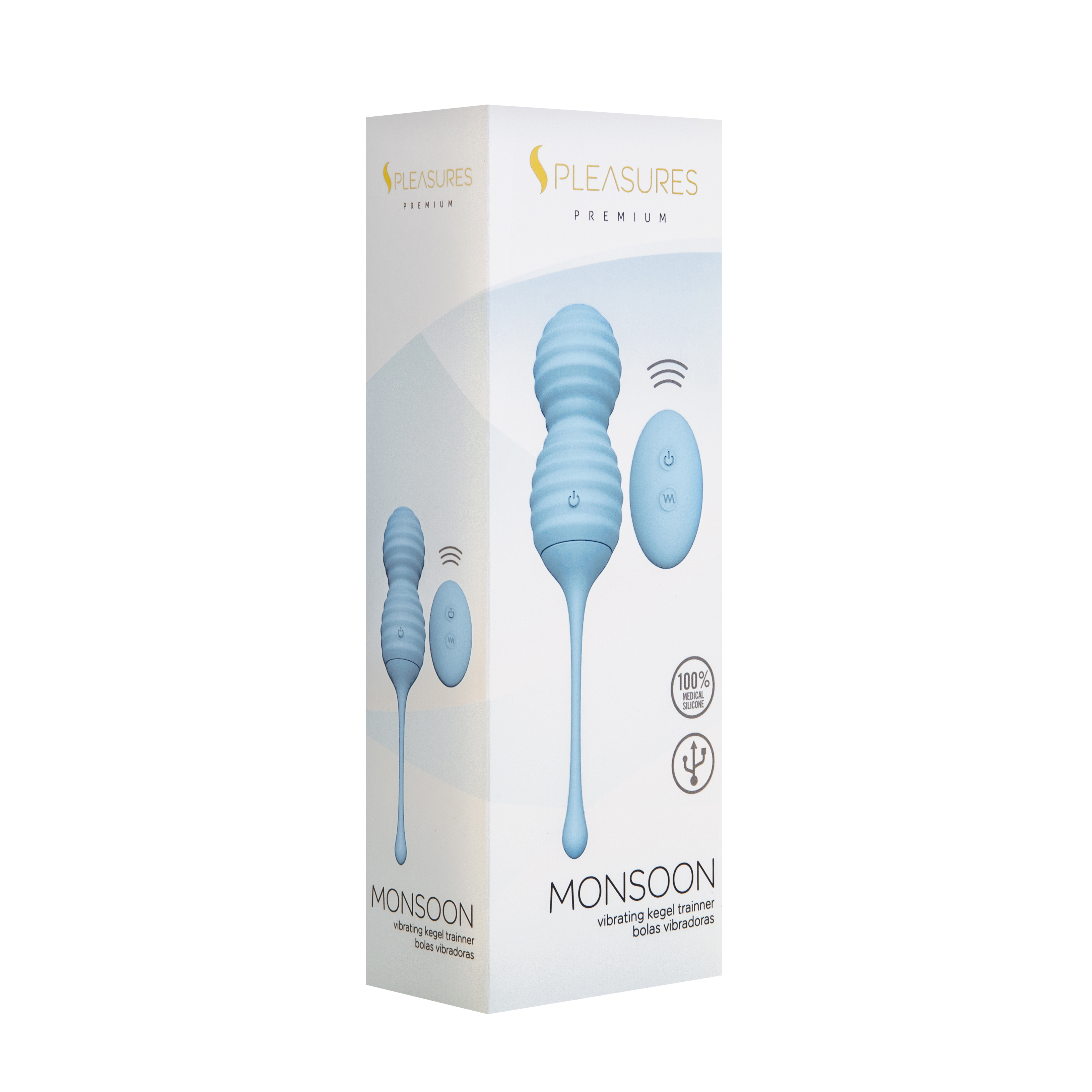 Son un magnífico entrenador del suelo pélvico, pues los expertos aseguran que el buen uso de las bolas chinas contribuye a prevenir problemas de salud como la incontinencia urinaria o el vaginismo además de mejorar la satisfacción sexual. El uso de las bolas chinas acompañado de un gel específico ayudan a fortalecer la musculatura pélvica y esto no sólo puede proporcionar una mayor satisfacción en las relaciones, sino que también ayuda a evitar problemas y desgarros durante el parto. Monsoon tienen la peculiaridad que incopora 9 velocidades de vibración, creando ondas dentro de la vagina que estimulan la musculatura. El mando a distancia tiene un alcance de 10 metros. Las bolas se pueden controlar desde el propio juguete o con el mando. El mando requiere una pila 3V (incluida). Recargable por cable USB. Material 100% silicona. Color azul.